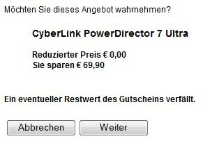 8. Enter PCWPowerDirector as the “Gutschein-Code” (coupon code).